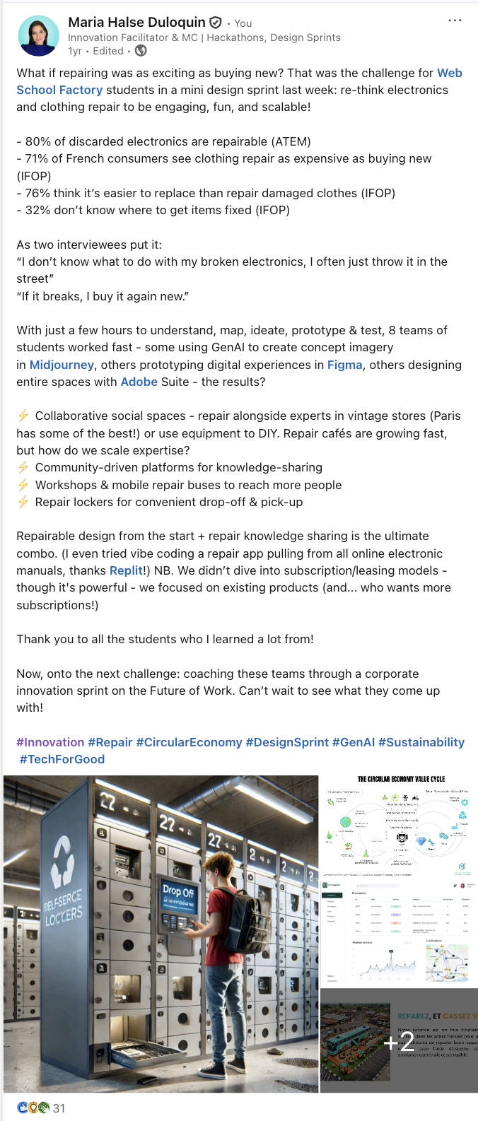“Maria a guidé les étudiants pour former six groupes, nous permettant d’explorer une variété d’idées et de solutions innovantes.”