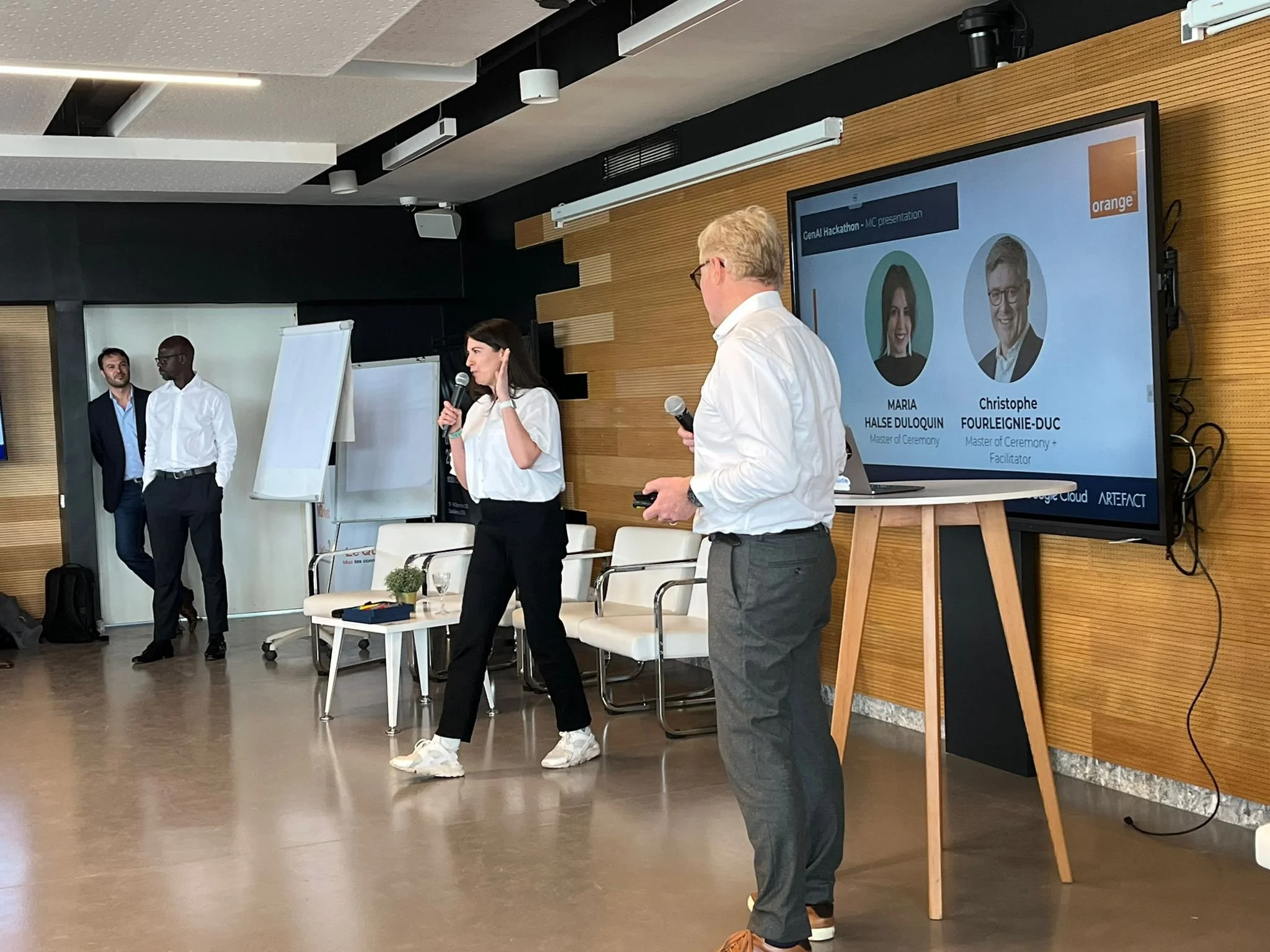 Introducing speakers, smooth transitions, winner announcements, audience engagement. - I love hosting corporate hackathons and tech conferences, always adapting to the audience and the strategic goals of the event.